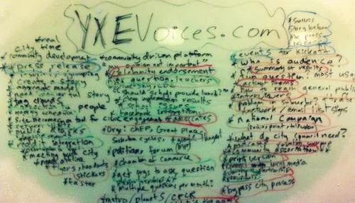 A diverse group of twelve participants gathered in The Common at The Two Twenty, sharing and exchanging ideas on taking YXEVoices.com to the next level. Ideas put forward invevitably landed into three common, broader themes: